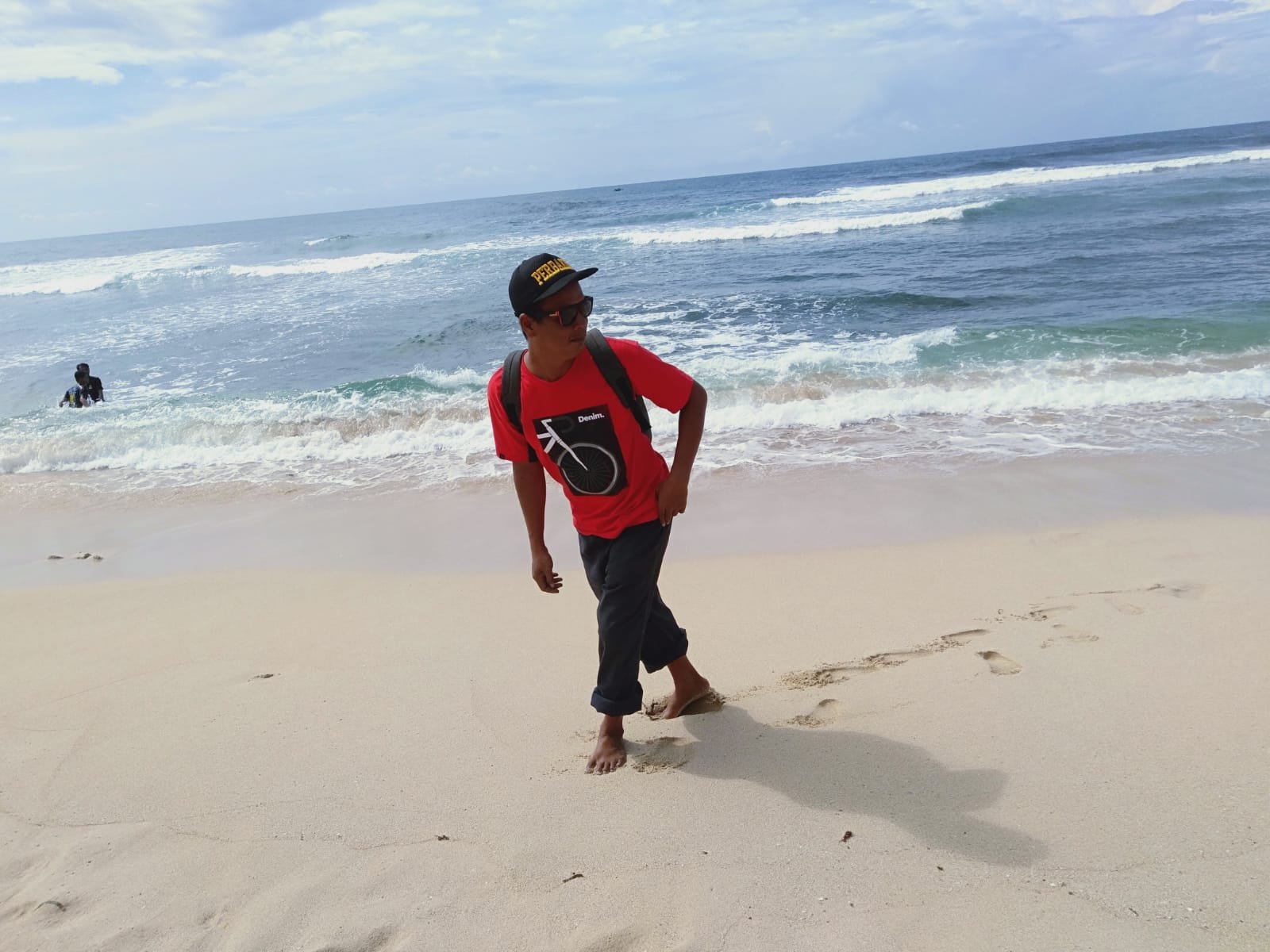 “Gaweanku ki mung sobo sawah,turut kalen,koyo cah cilik, kekeceh,” ujarnya sambil membetulkan topinya yang mireng.